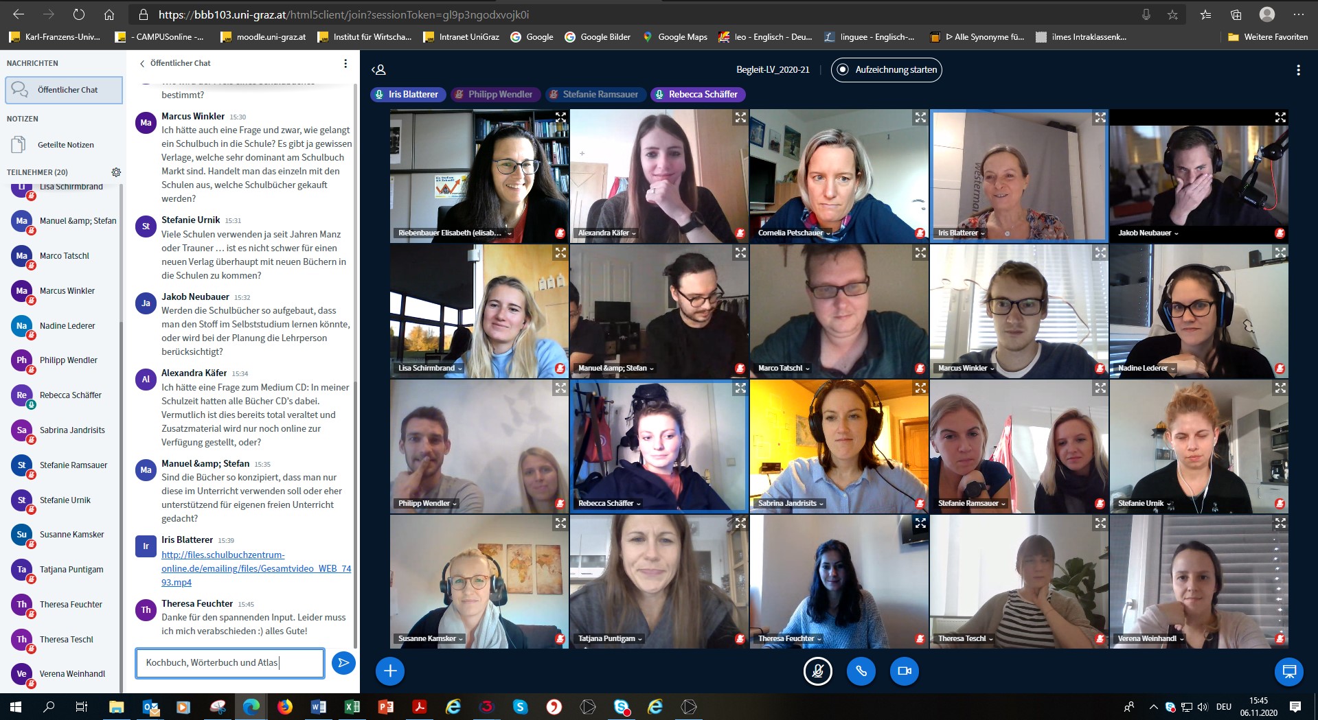 Als Expertin in der Begleit-LV zum Schulpraktikum durften wir heute Frau Mag. Blatterer begrüßen. Die Geschäftsführerin der Westermanngruppe gab uns einen Blick hinter die Kulissen eines Schulmedienverlags. Während einer spannenden Präsentation und Diskussion beantwortete Frau Blatterer zahlreiche Fragen der Studierenden rund um das Medium Schulbuch.