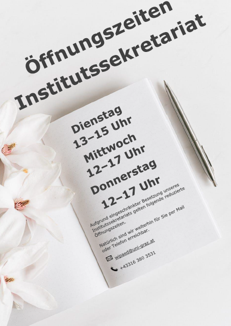 Aufgrund eingeschränkter Besetzung unseres Institutssekretariats gelten folgende reduzierte Öffnungszeiten: