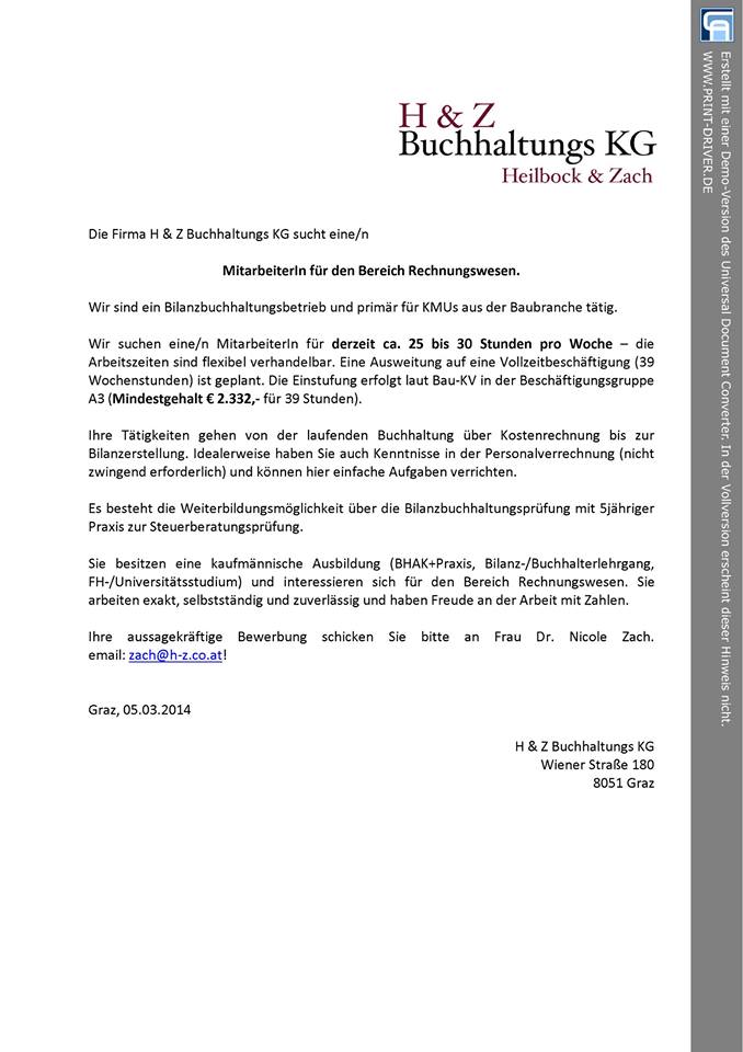 MitarbeiterIn im Bereich Rechnungswesen bei H & Z Buchhaltungs KG